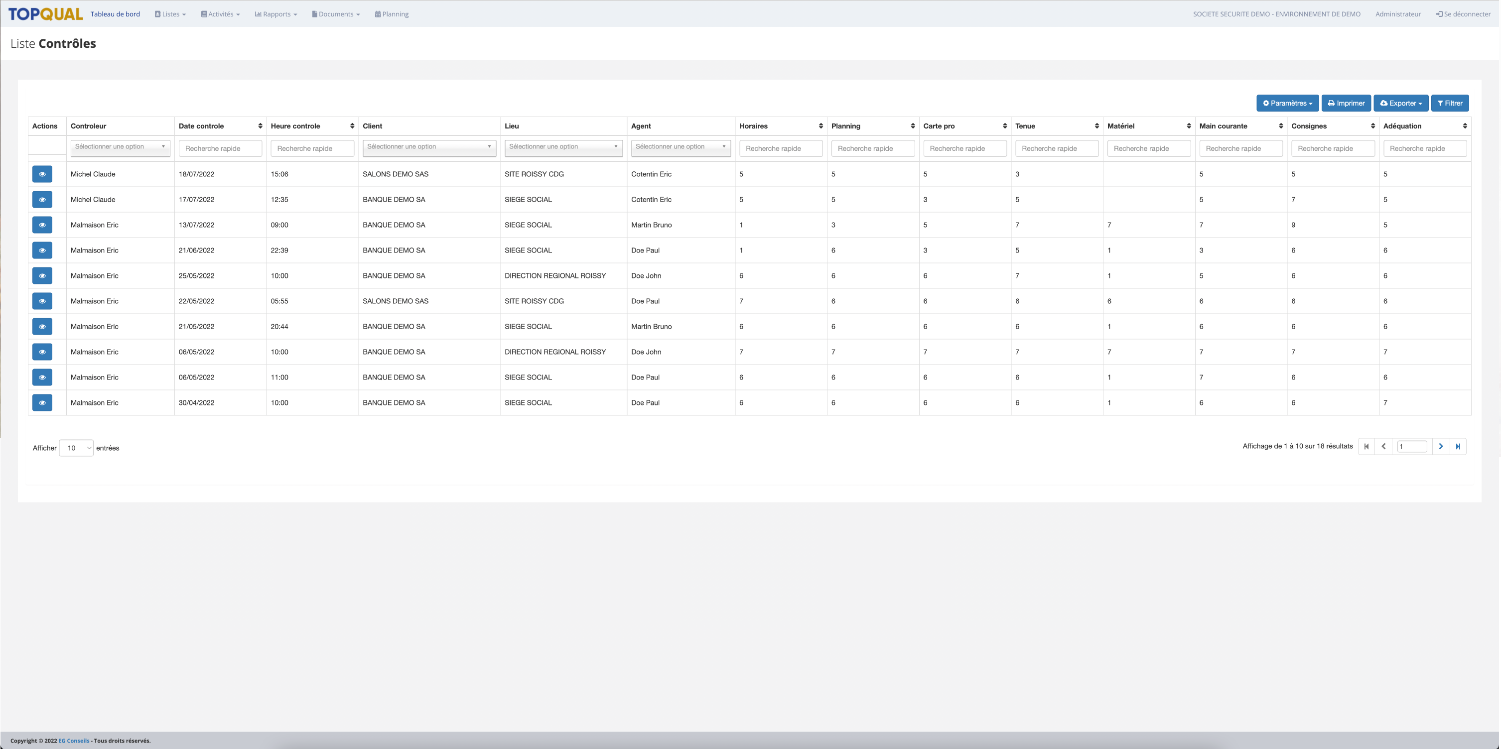 Mains Courantes : un suivi interactif des évènements constituant ou intervenant au cours de vos prestations. C’est le fil d’information qui alimente votre base de données qualitative des prestations délivrées. Contrôles qualité : C’est le coup de projecteur précis sur la qualité délivrée. Par vos soins ou par un tiers indépendant comme EG Conseils, ces contrôles qualité renforcent votre base de données qualitative et démontrent votre savoir-faire
