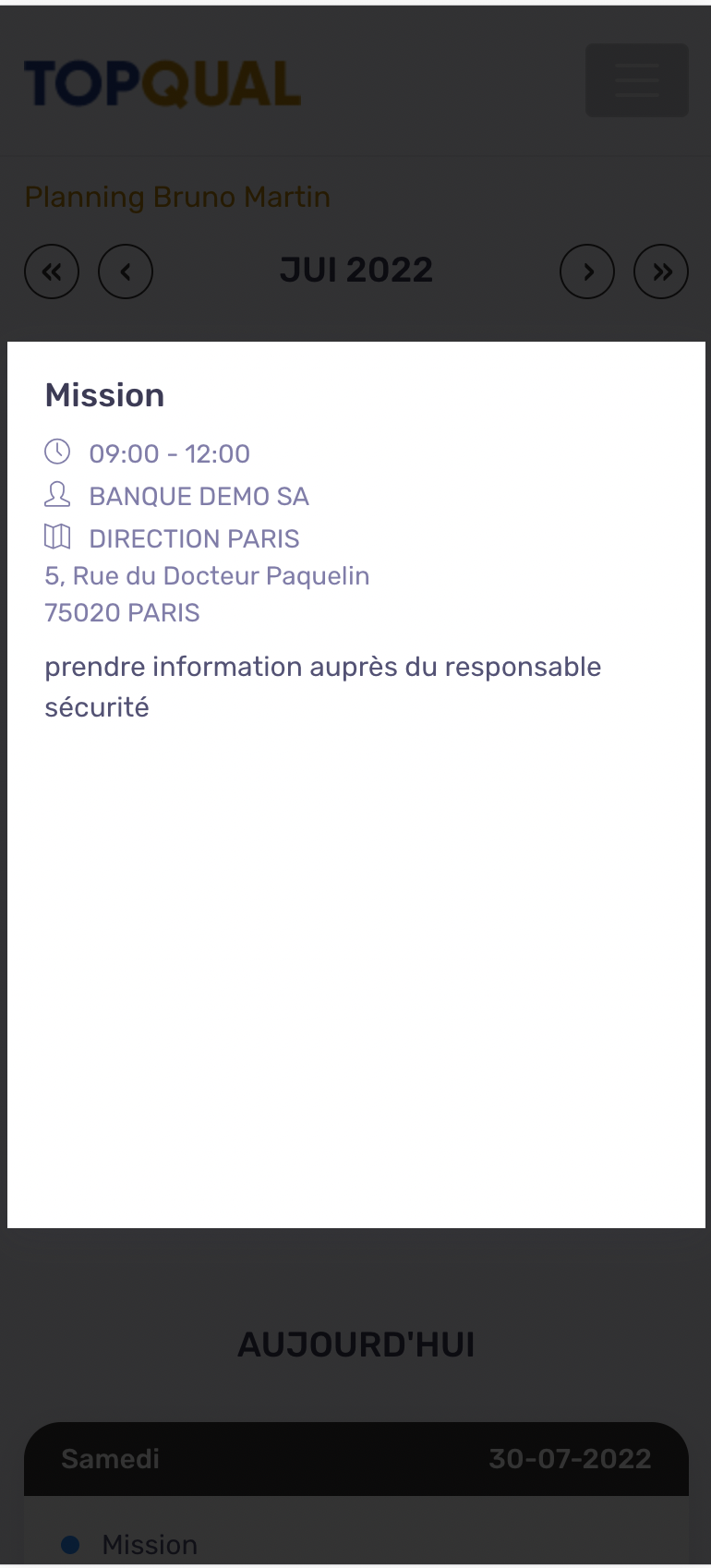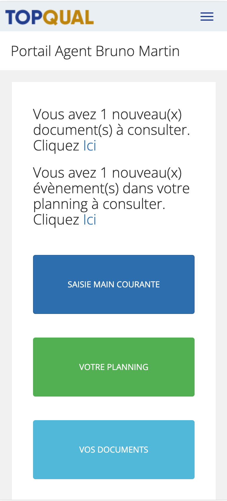 Accessible sur smartphone ou Tablette, il propose aux intervenants la saisie des mains courantes, leur planning, les documents à valider.
