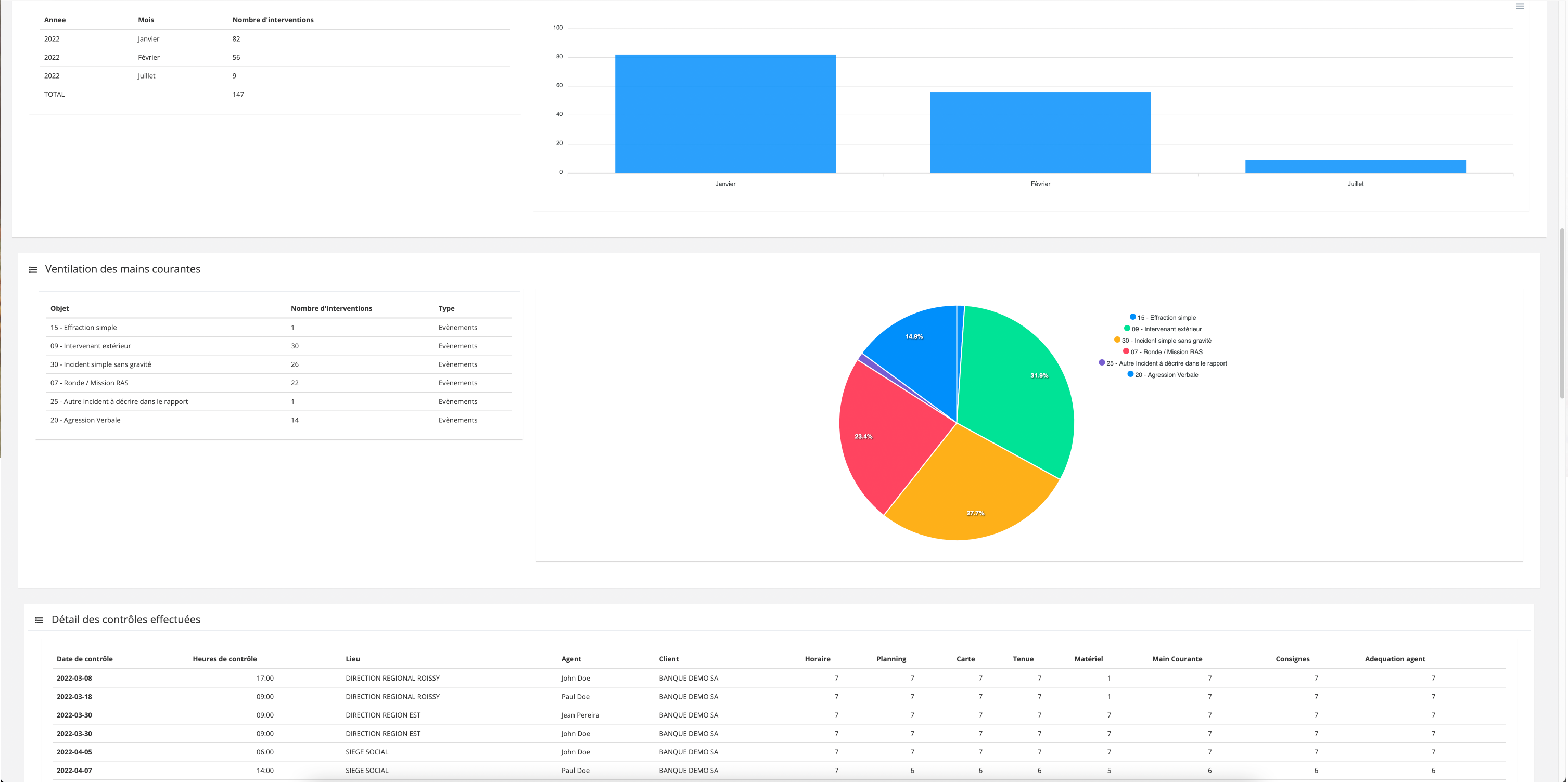 - Ventilation des incidents par évènements
